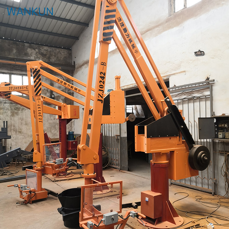 ZJZ seriyalar hidrolik casting manipulators waa yeni tip casting and lifting equipment, no travel switch, using the cylinder's own travel limit, and a buffer device. By the piston rod movement up and down to drive the lifting boom movement, movements relatively stabil.